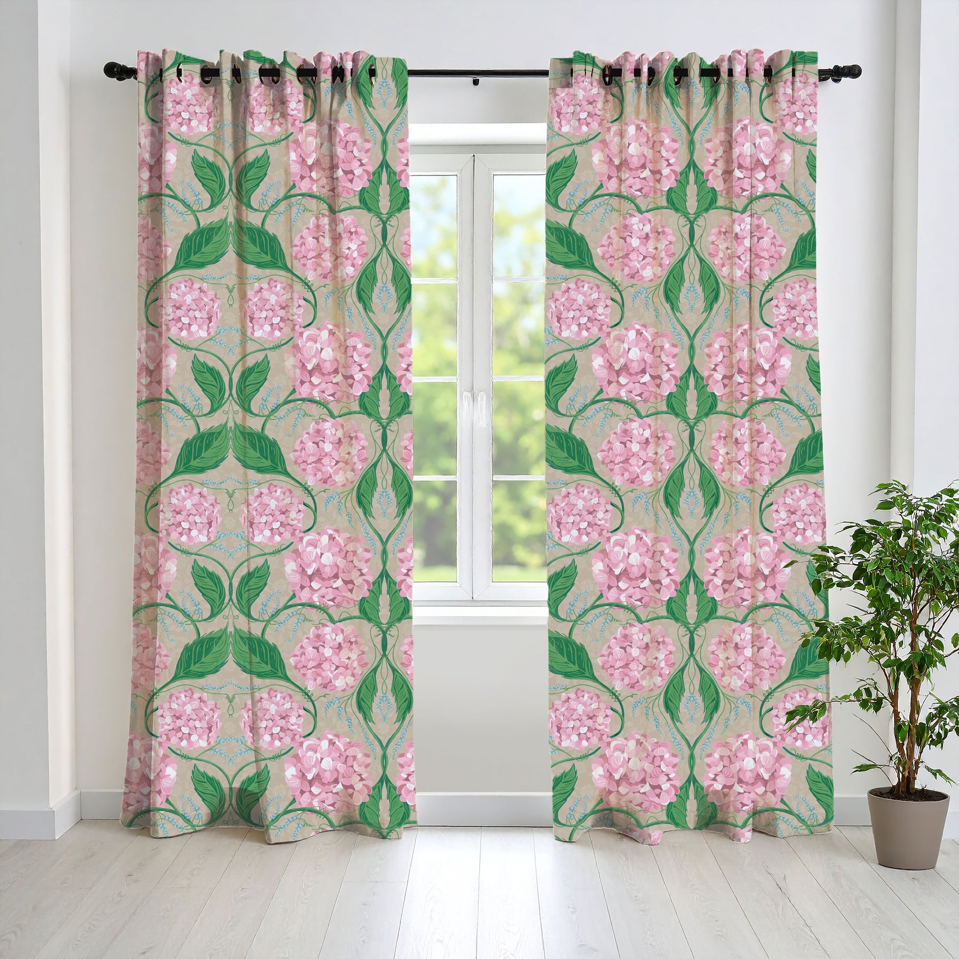 Our hydrangea pattern is a modern take on a William Morris style print featuring large hydrangea clusters and intricately woven vines and leaves.