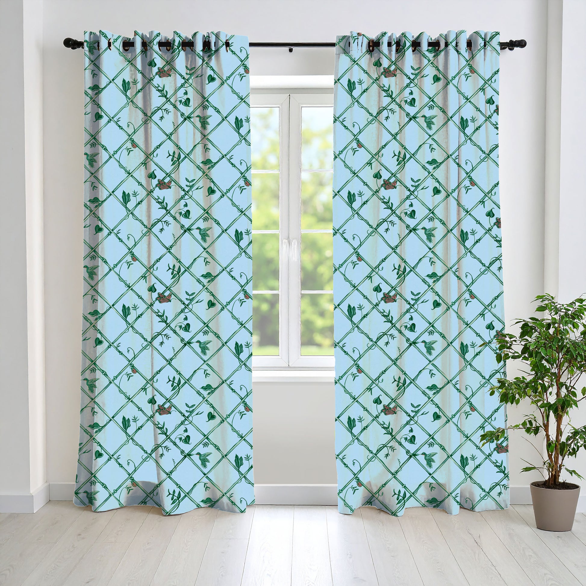 Carolina Sky Bamboo Lattice Printed Cotton Fabric by the Yard
